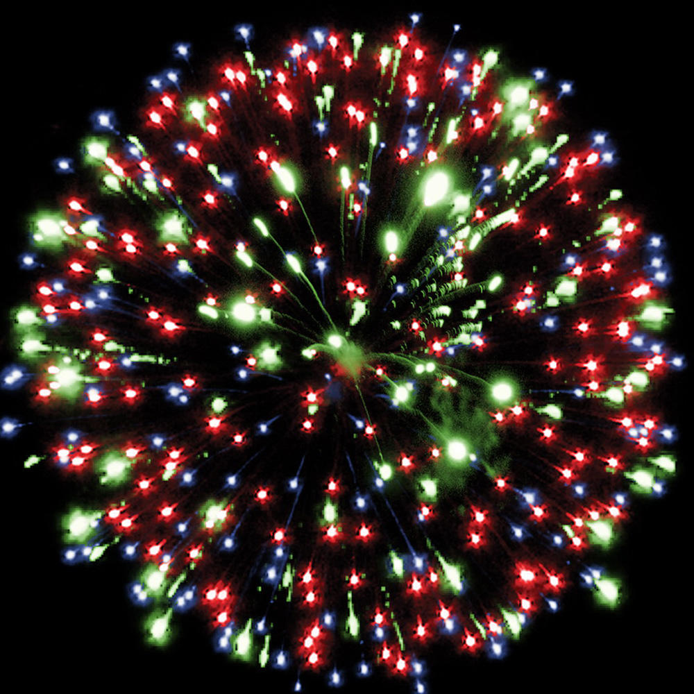 4. Красочная концовка: Вертушка разрывается облаком трещащих разрывов (трещащая хризантема).
