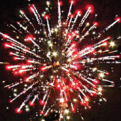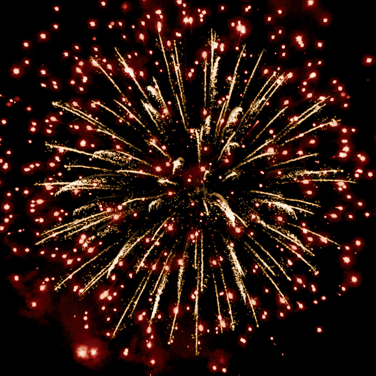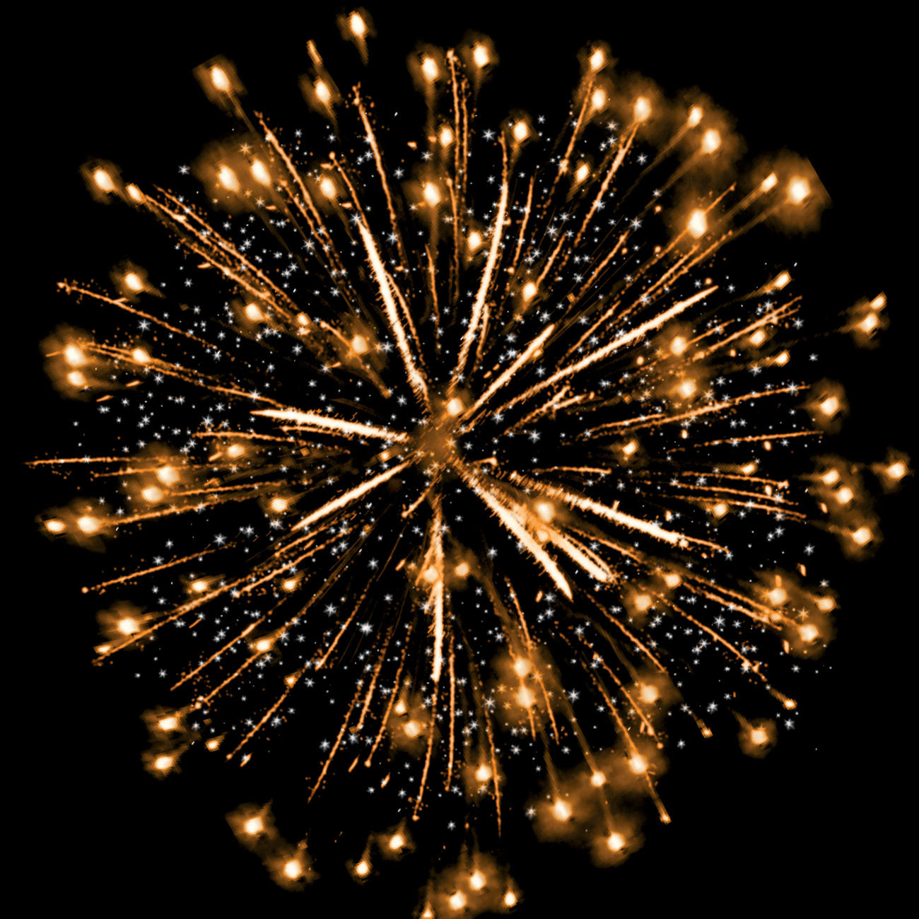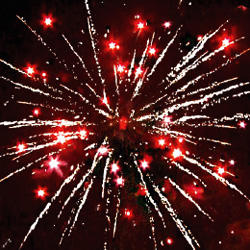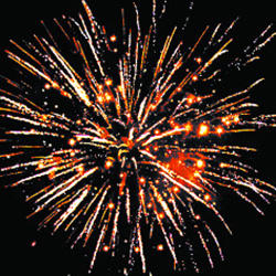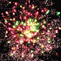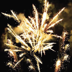 15. множество разлетающихся золотых трещащих искр, красных, зеленых и золотых огней.