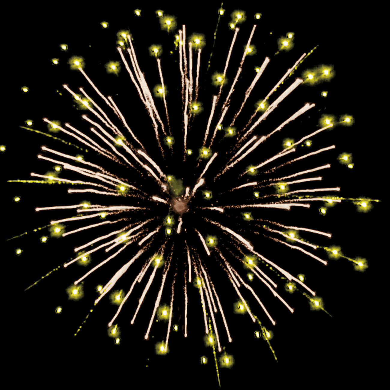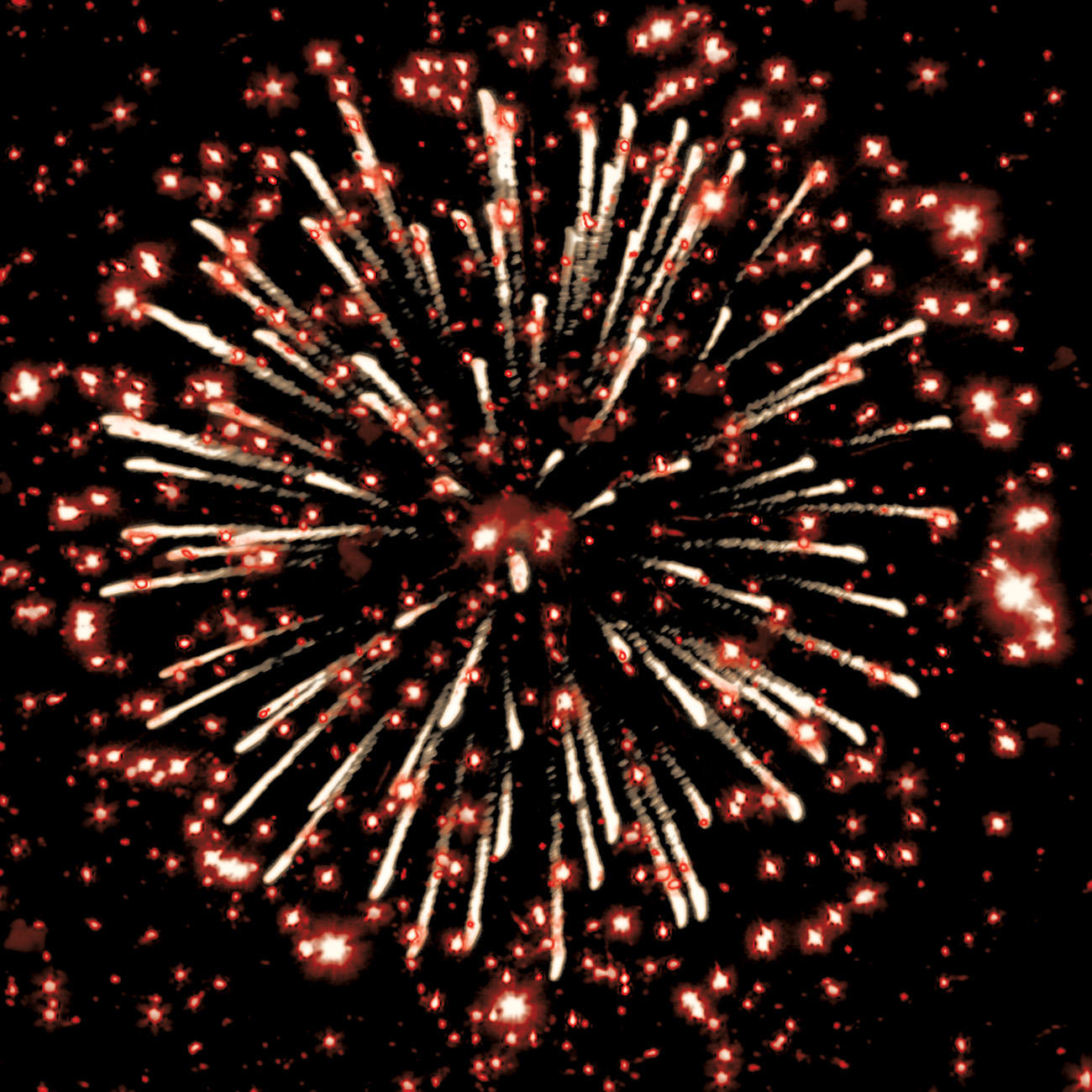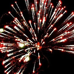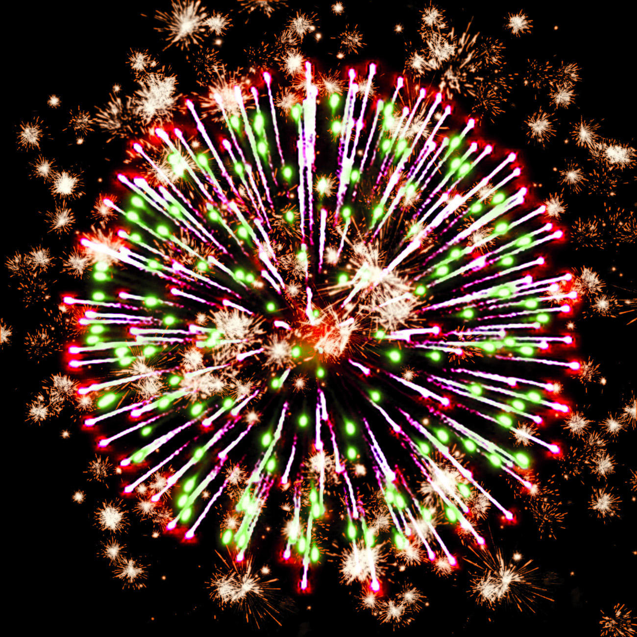 15. множество разлетающихся золотых трещащих искр, красных, зеленых и золотых огней.