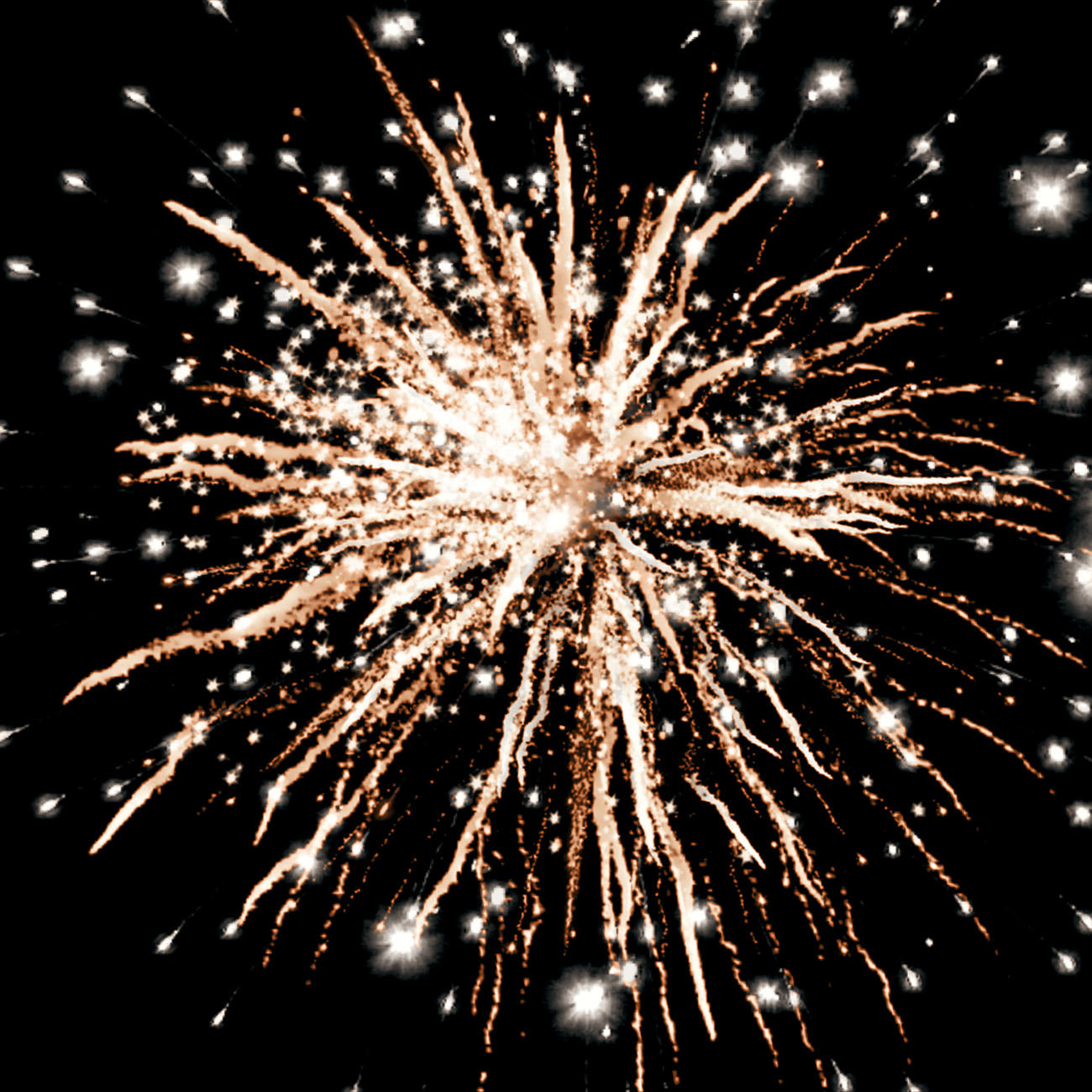 4. золотых форсов с трещащими серебряными искрами и красных мерцающих огней.