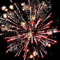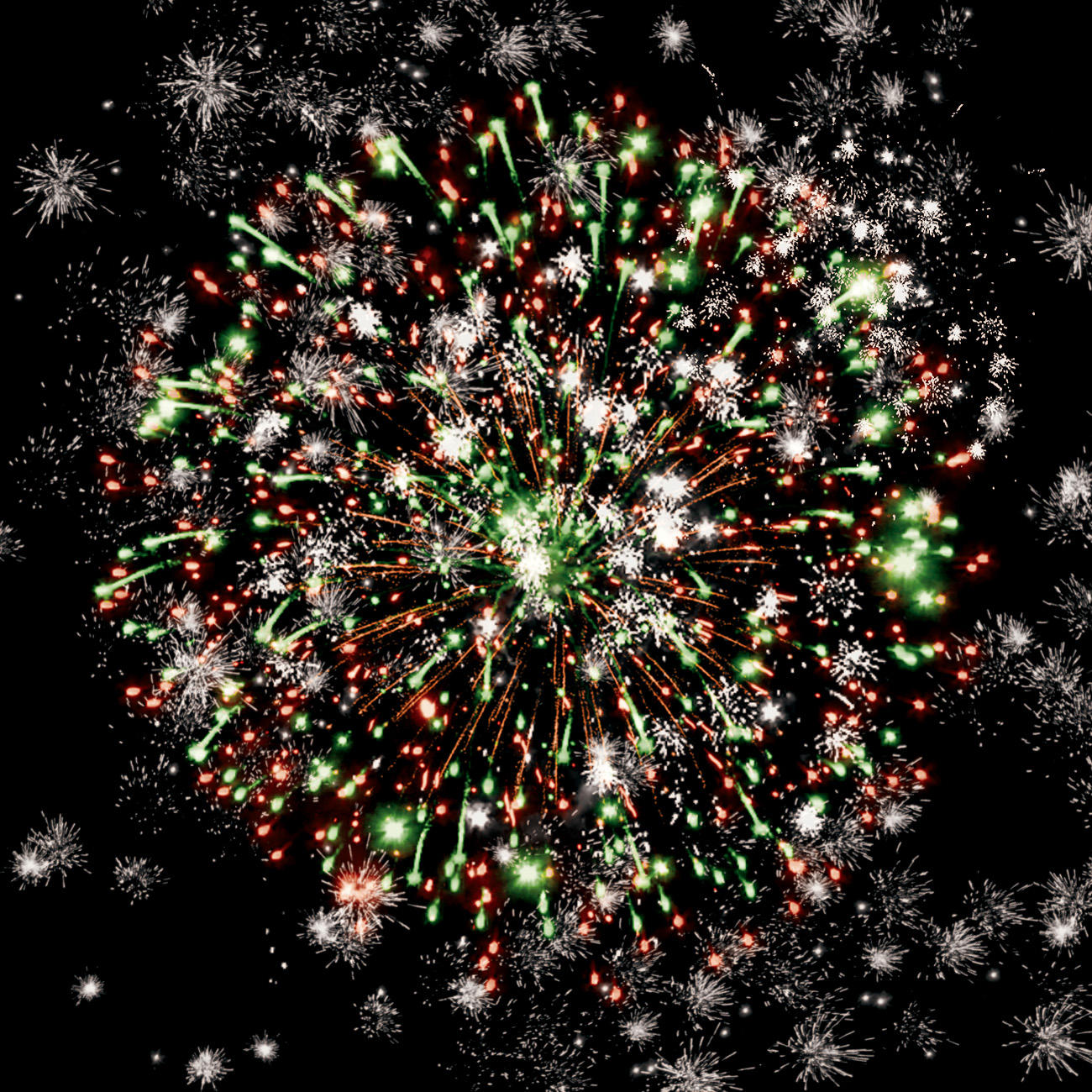5. красных и зеленых огней, множества трещащих серебряных искр.