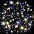 Сфера из красных звезд с серебряными хвостами, серебряных комет, фиолетовых звезд с серебряными хвостами, красных и зеленых звезд